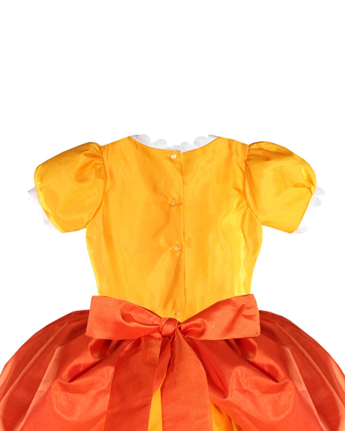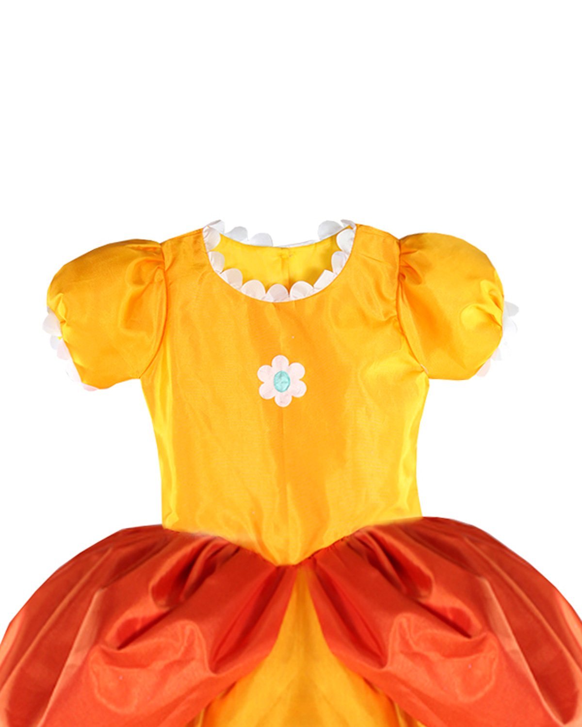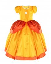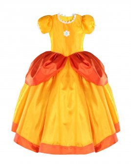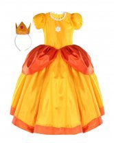 The Yellow princess costume from our brand Maylin is made of high quality taffeta and comes with a matching crown to complete the royal look. Your daughter will dress comfortable and elegant at any party or costume event.