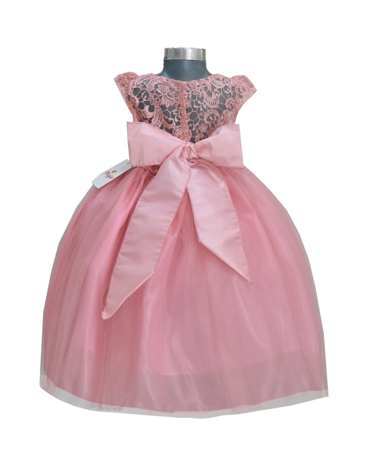 The Maylin brand baby party dress is an elegant and refined garment, made with a delicate lace lining, veil and bodice. It has a pearl embellishment on the front for a touch of elegance. This dress is perfect for any special event.