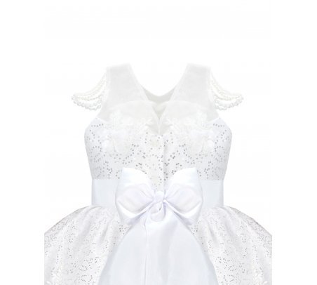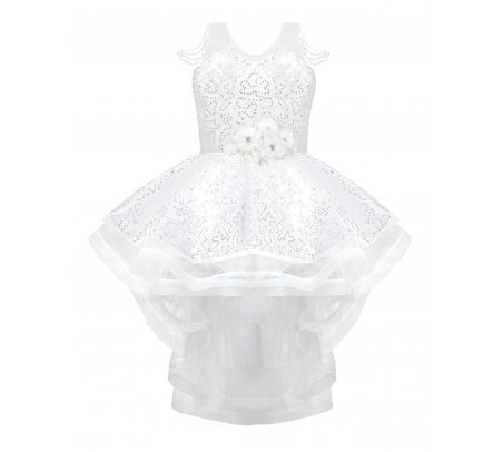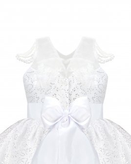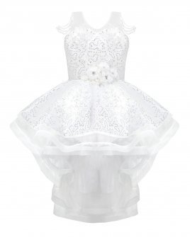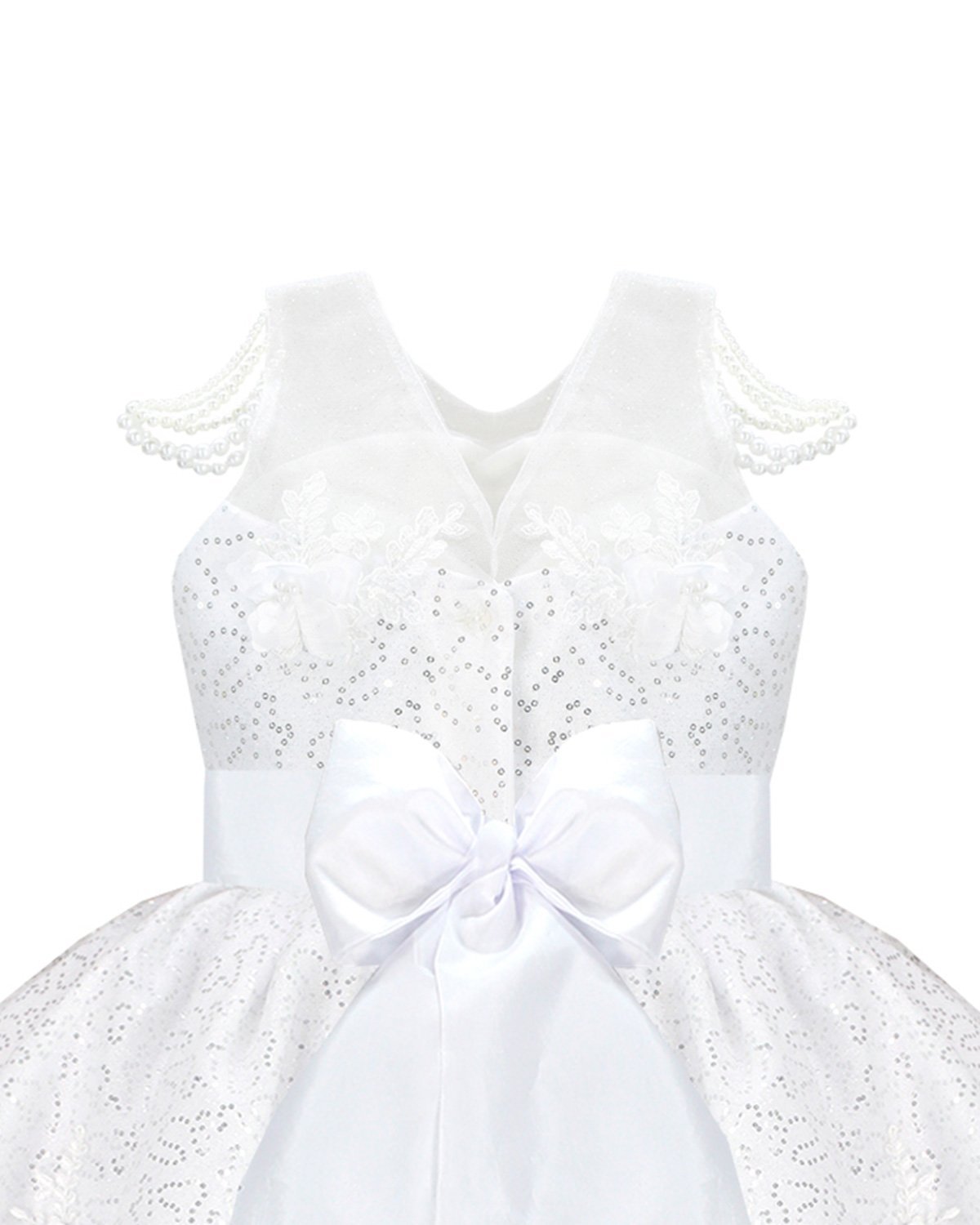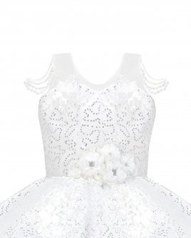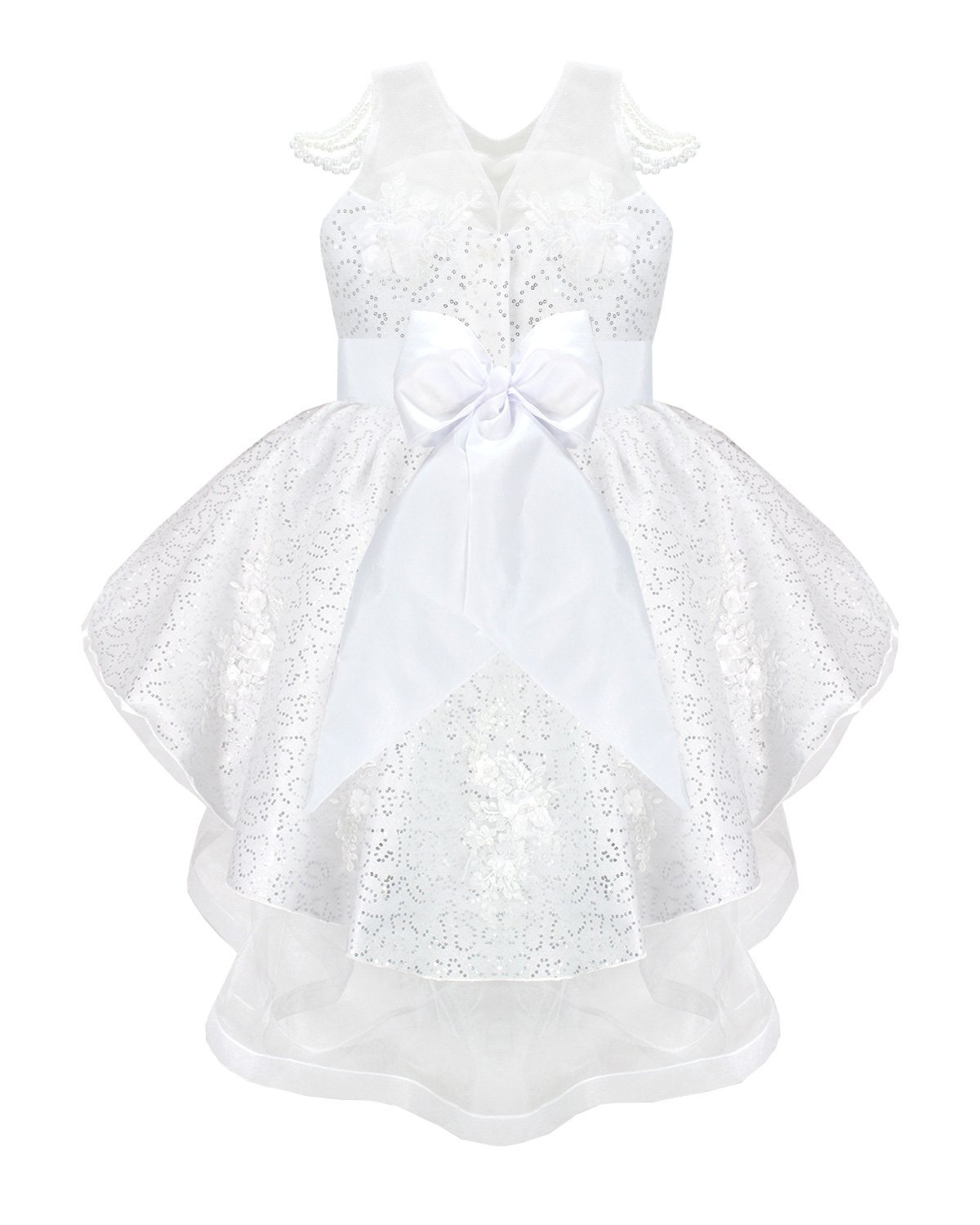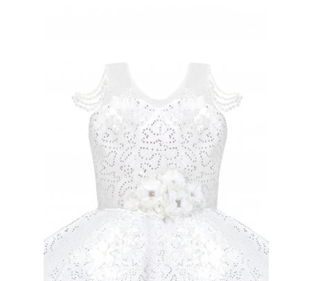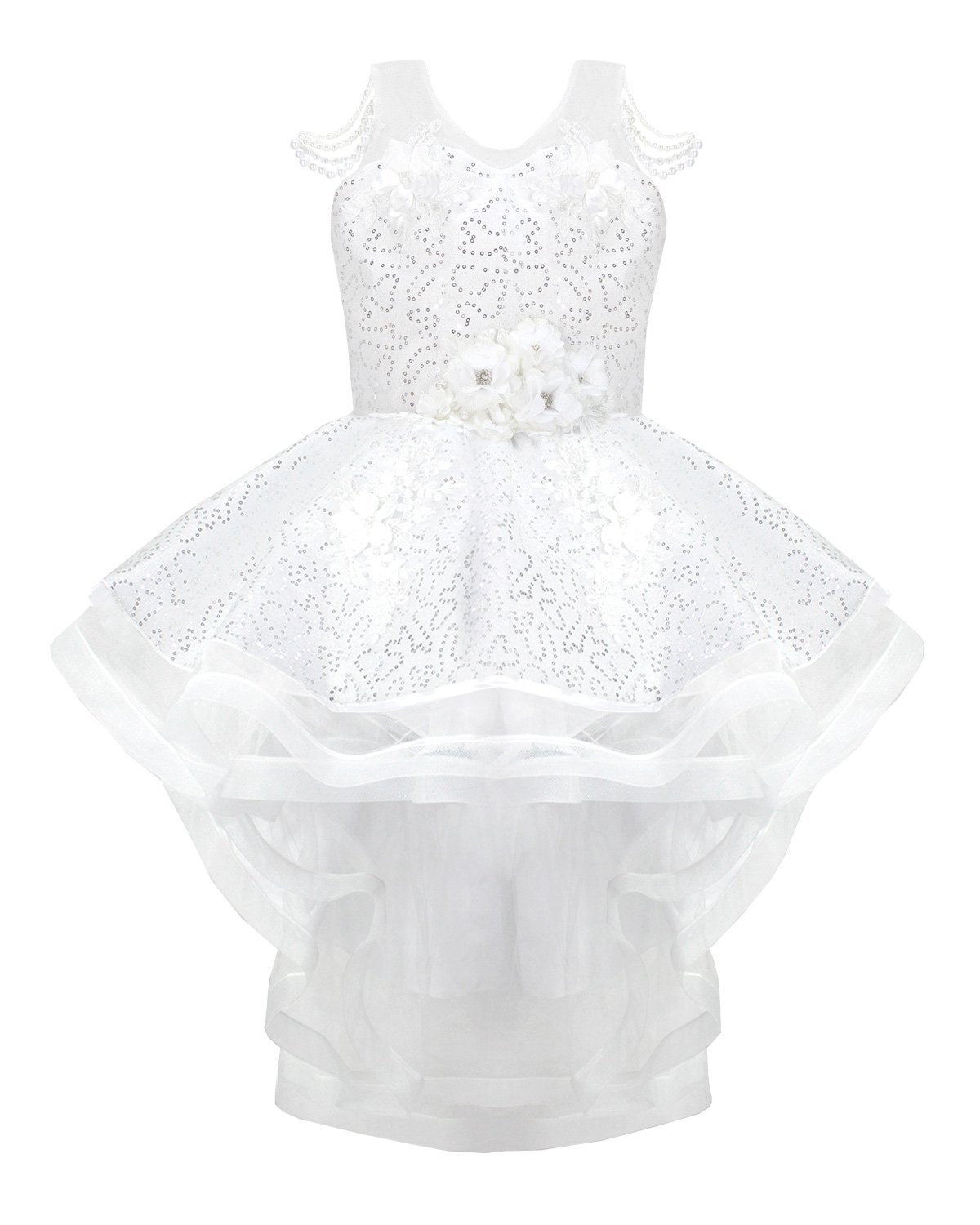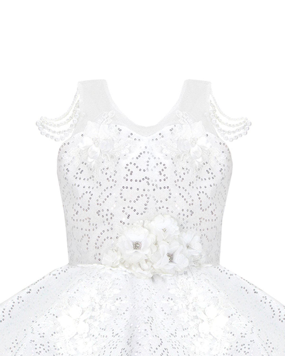 Discover the charm and sophistication of the Maylin girl's party dress. Its unique and different design is highlighted by the precious pearls that adorn the straps, while the combination of lining and sequined taffeta adds a touch of luxury. A short in the front and long in the back style makes it a lovely option for any special event.