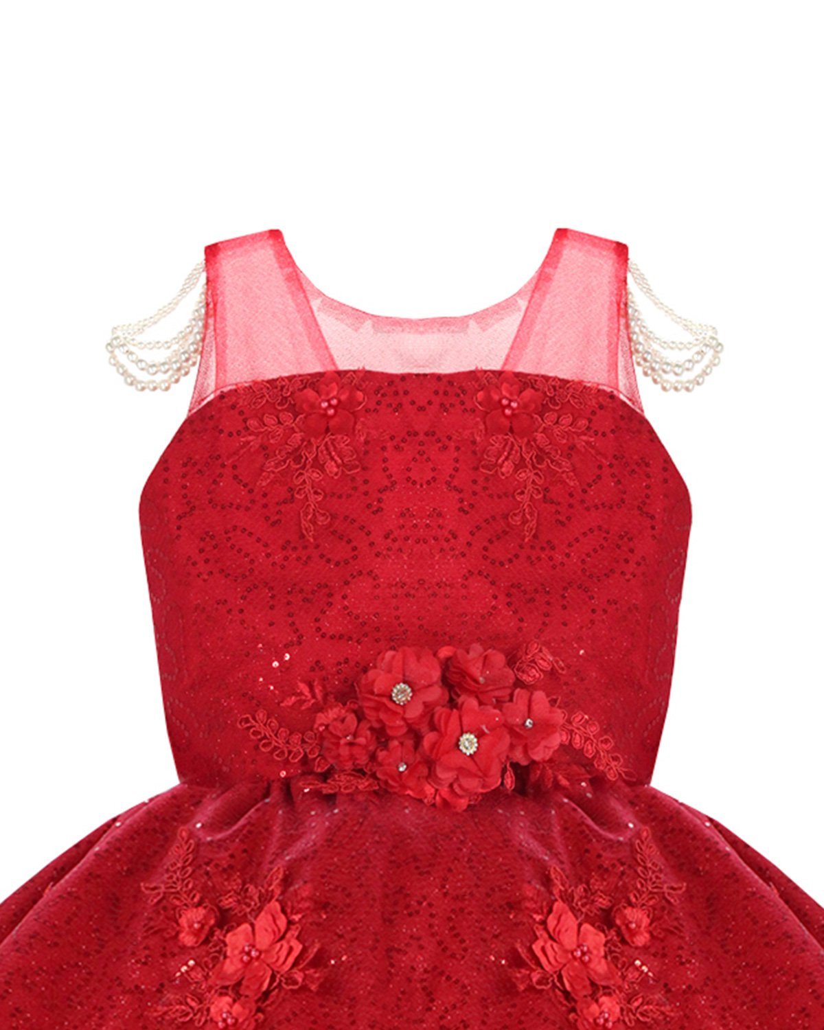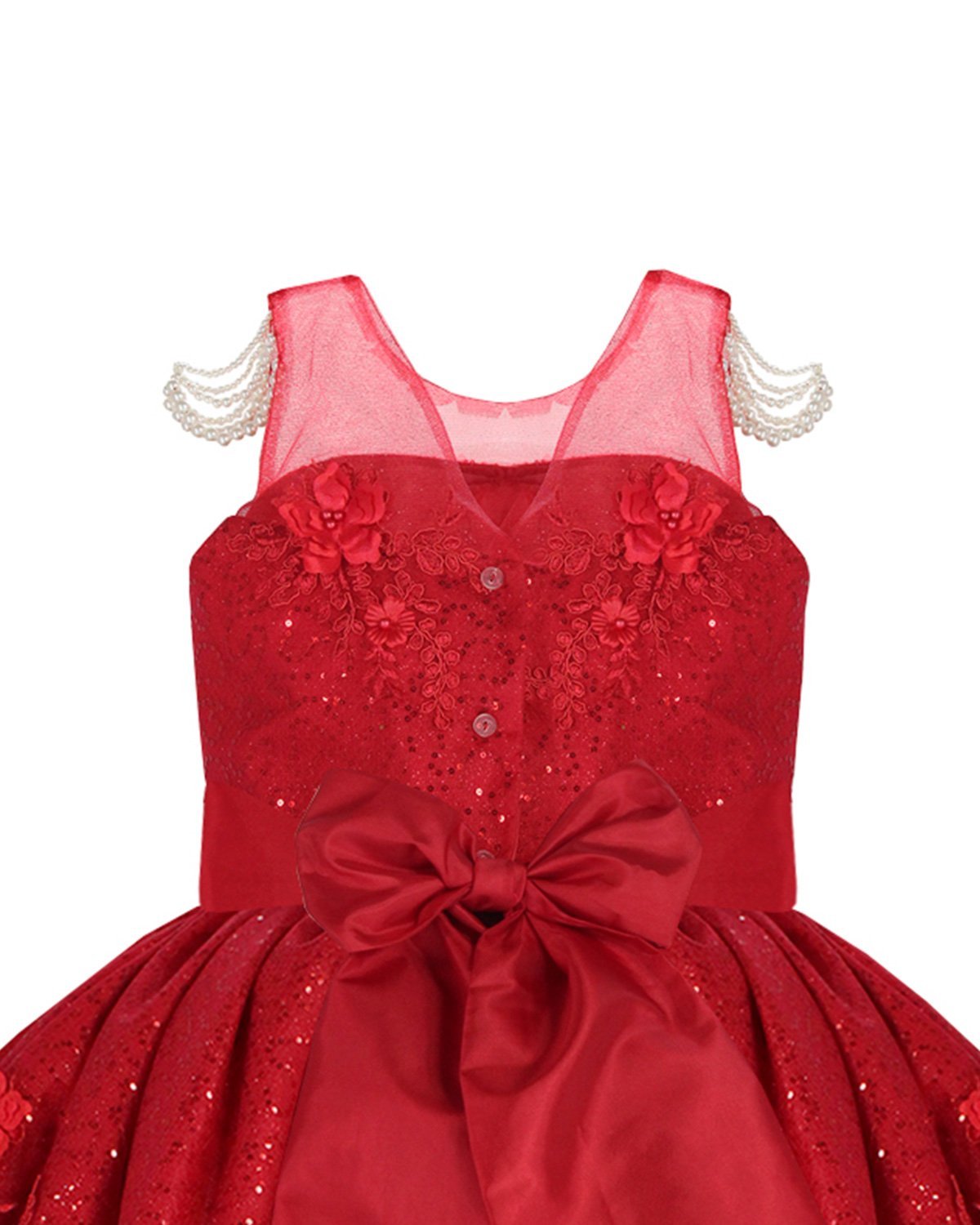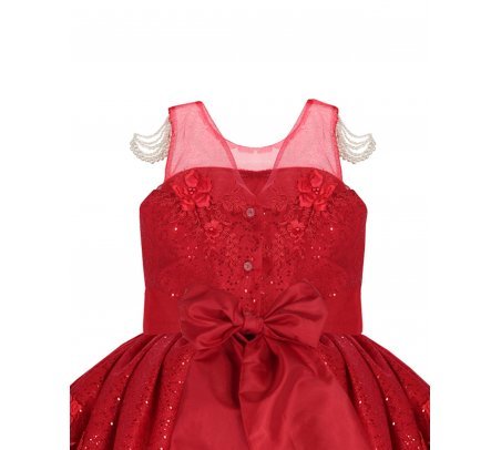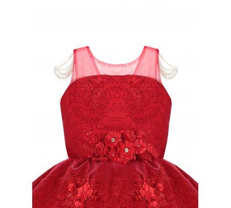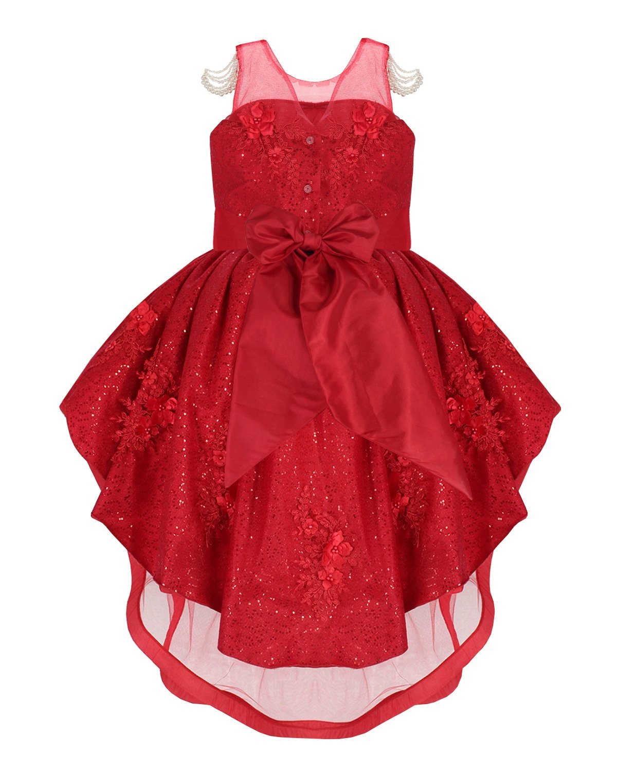 Discover the charm and sophistication of the Maylin girl's party dress. Its unique and different design is highlighted by the precious pearls that adorn the straps, while the combination of lining and sequined taffeta adds a touch of luxury. A short in the front and long in the back style makes it a lovely option for any special event.