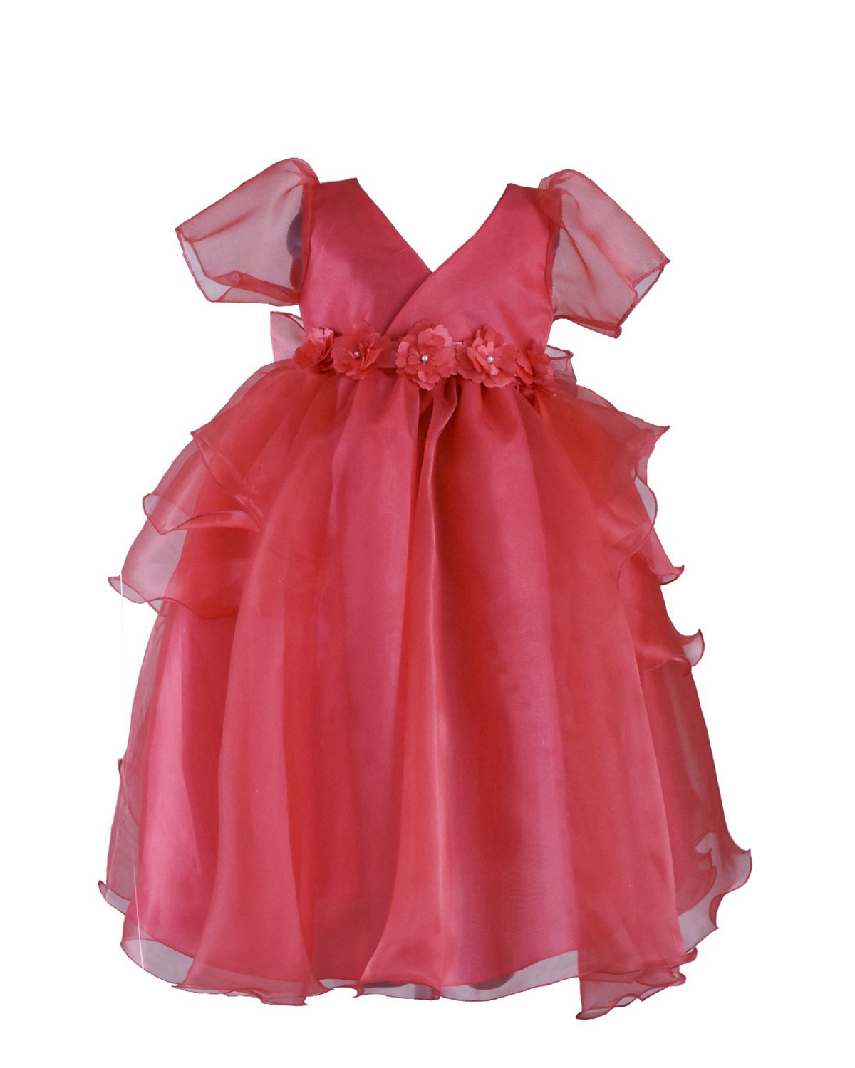 Paulina Baby Girl's Gown, made from organza and lining, with front-crossed blouse, V-neck, and 3D flower decoration with rhinestones and pearls.