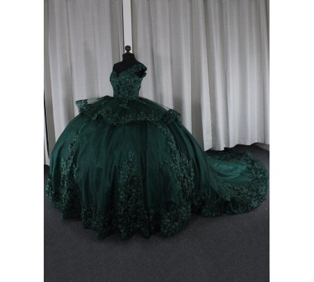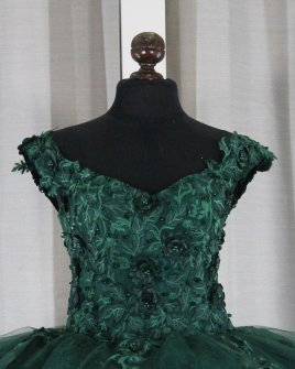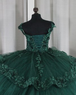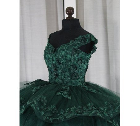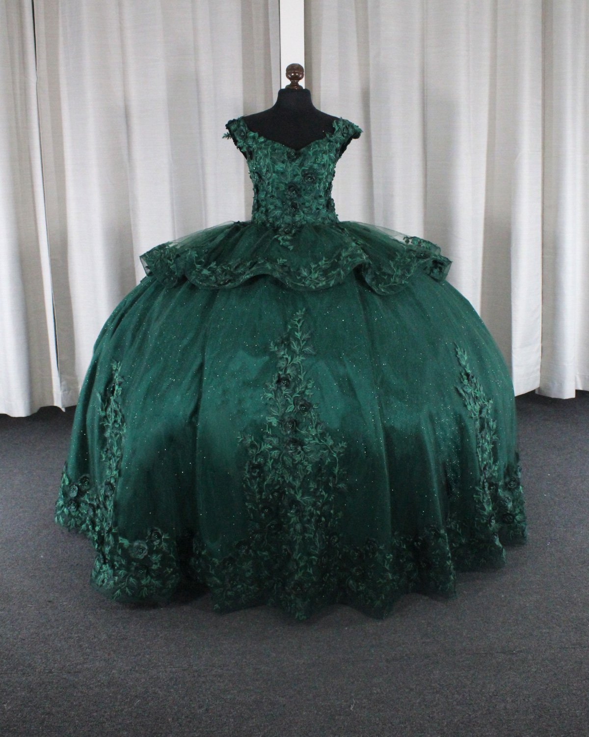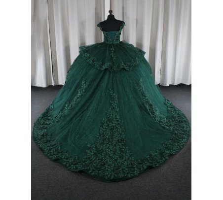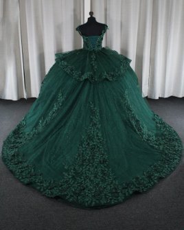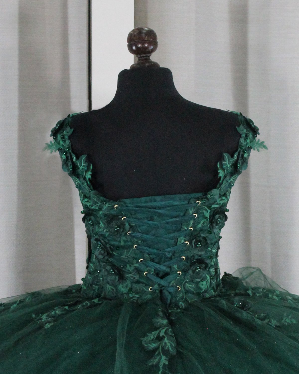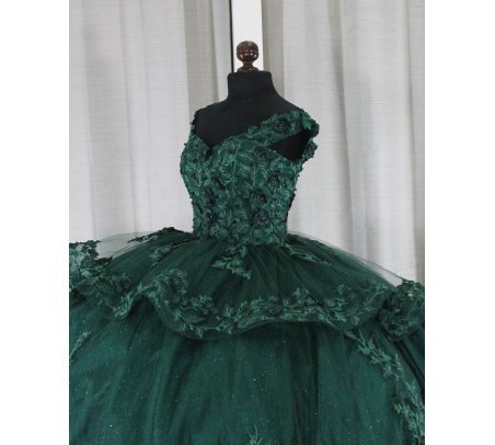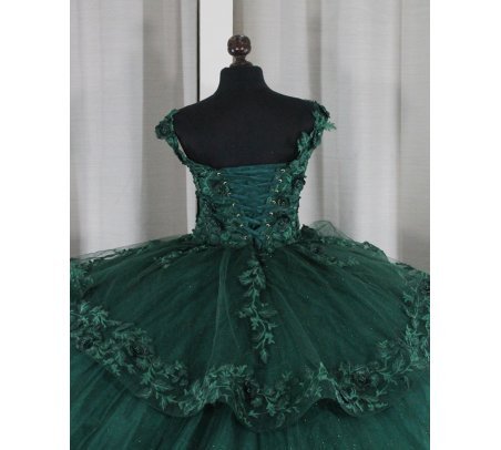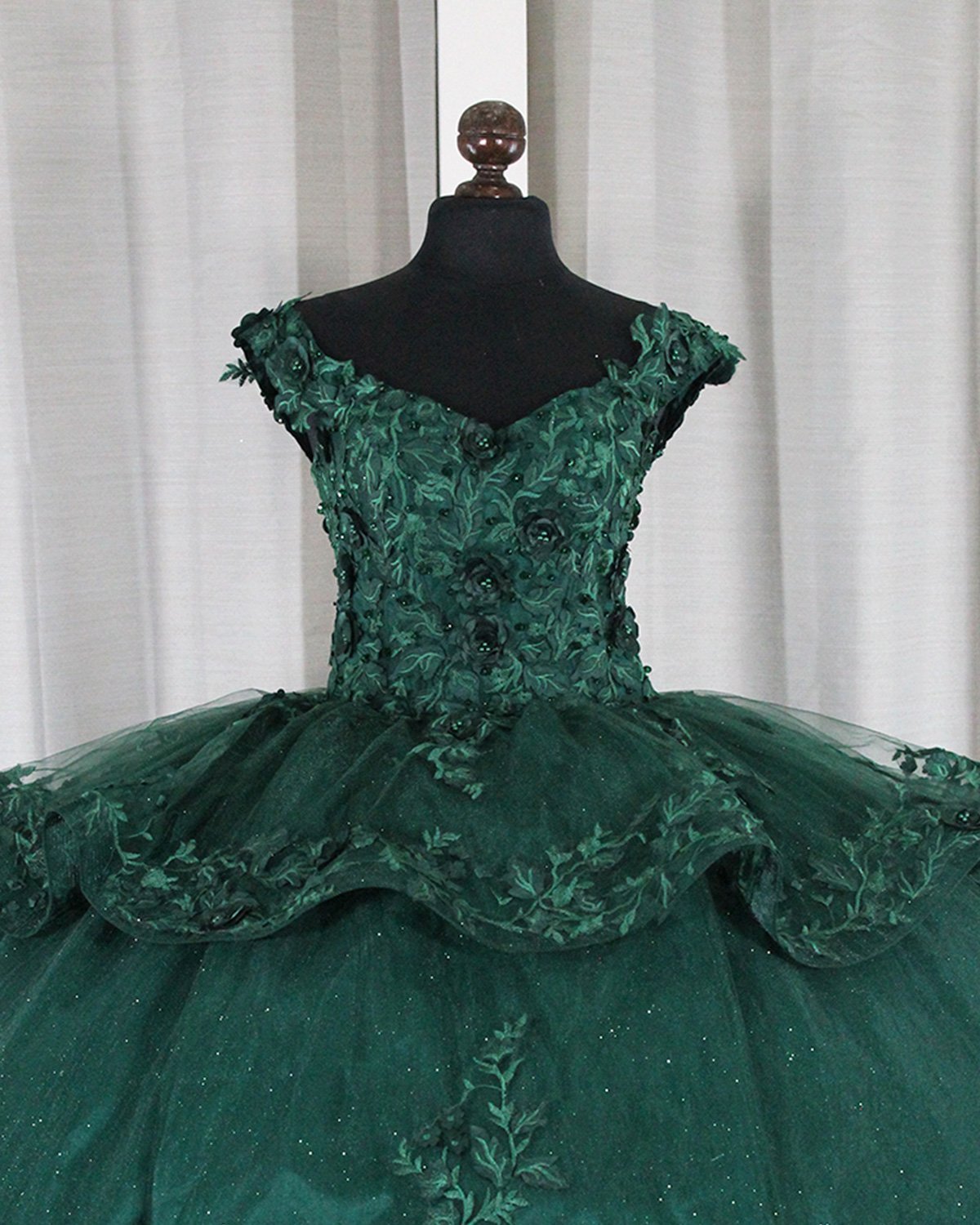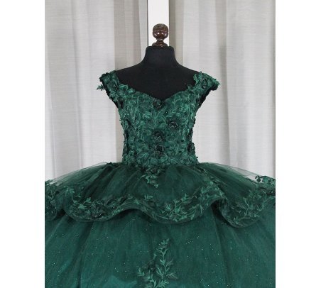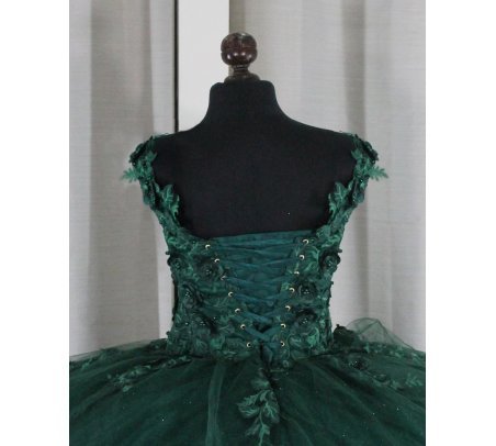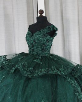 The Aileen Quinceañera Dress is a masterpiece of elegance and sophistication. Made with tulle, lining, and delicate embroidery, this dress features a spectacular overskirt with a train, adorned with 3D flowers that add a unique and special touch. The embroidered train completes the design, creating a majestic and memorable look for your quinceañera celebration. Perfect for standing out on your big day, this dress combines tradition with modernity, ensuring you feel like a true princess.