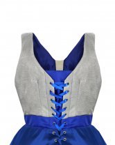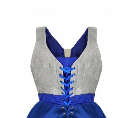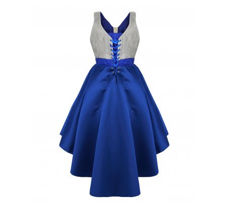 The train-adorned skirt adds a touch of glamour, while the blouse features an elegant corset finish at the back. This dress not only follows youthful trends but also incorporates classic elements for a unique and sophisticated look.