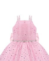 The Estrella Youth Dress is the perfect choice to stand out at any special occasion. Its elegant design features pearl-adorned straps and a sophisticated square neckline. The 3/4 skirt, crafted with multiple layers of glitter tulle, adds volume and a spectacular sparkle. At the back, a lace-up corset ensures a perfect fit, complemented by a large decorative bow for a refined touch. The waist is accentuated with a delicate rhinestone belt that enhances its unique design. Ideal for parties, weddings, or formal events.