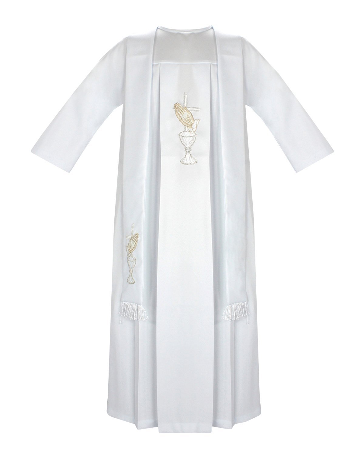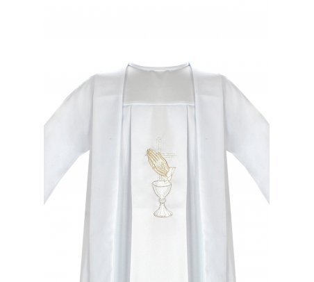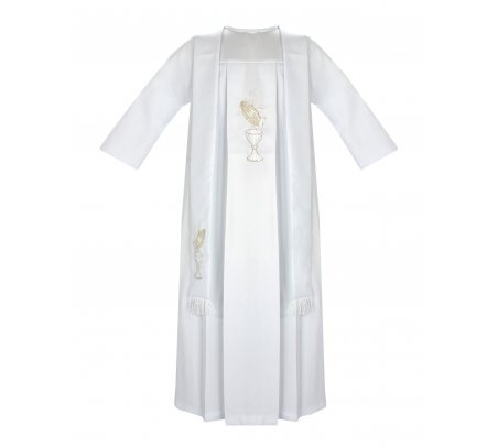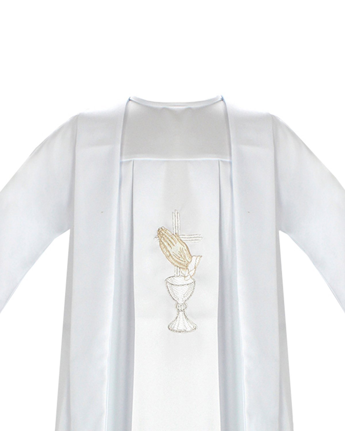 Unisex First Communion tunic with sacramental embroideries on the front and stole.