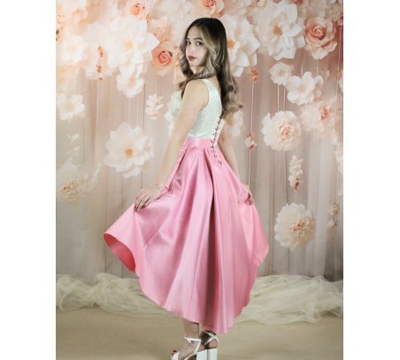 Descubre el encanto distintivo del Vestido Juvenil Modelo Ashley. La falda con cauda agrega un toque de glamour, mientras que la blusa presenta un elegante acabado de corsé en la espalda. Este vestido no solo sigue las tendencias juveniles, sino que también incorpora elementos clásicos para una apariencia única y sofisticada.