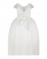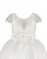 El vestido de primera comunión para niña de la marca Maylin está elaborado con materiales de alta calidad, incluyendo forro y velo suave para asegurar una sensación cómoda y delicada.