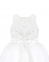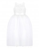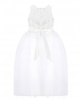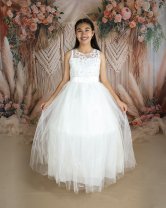 This first communion dress for a girl is a classic and elegant choice for such a special day. It is made of high quality lining and has a soft and delicate veil that gives it a touch of simplicity and purity. The bodice of the dress is decorated with exquisite lace that adds a touch of sophistication and elegance. The skirt of the dress is soft and light, allowing the girl to move comfortably during the ceremony.