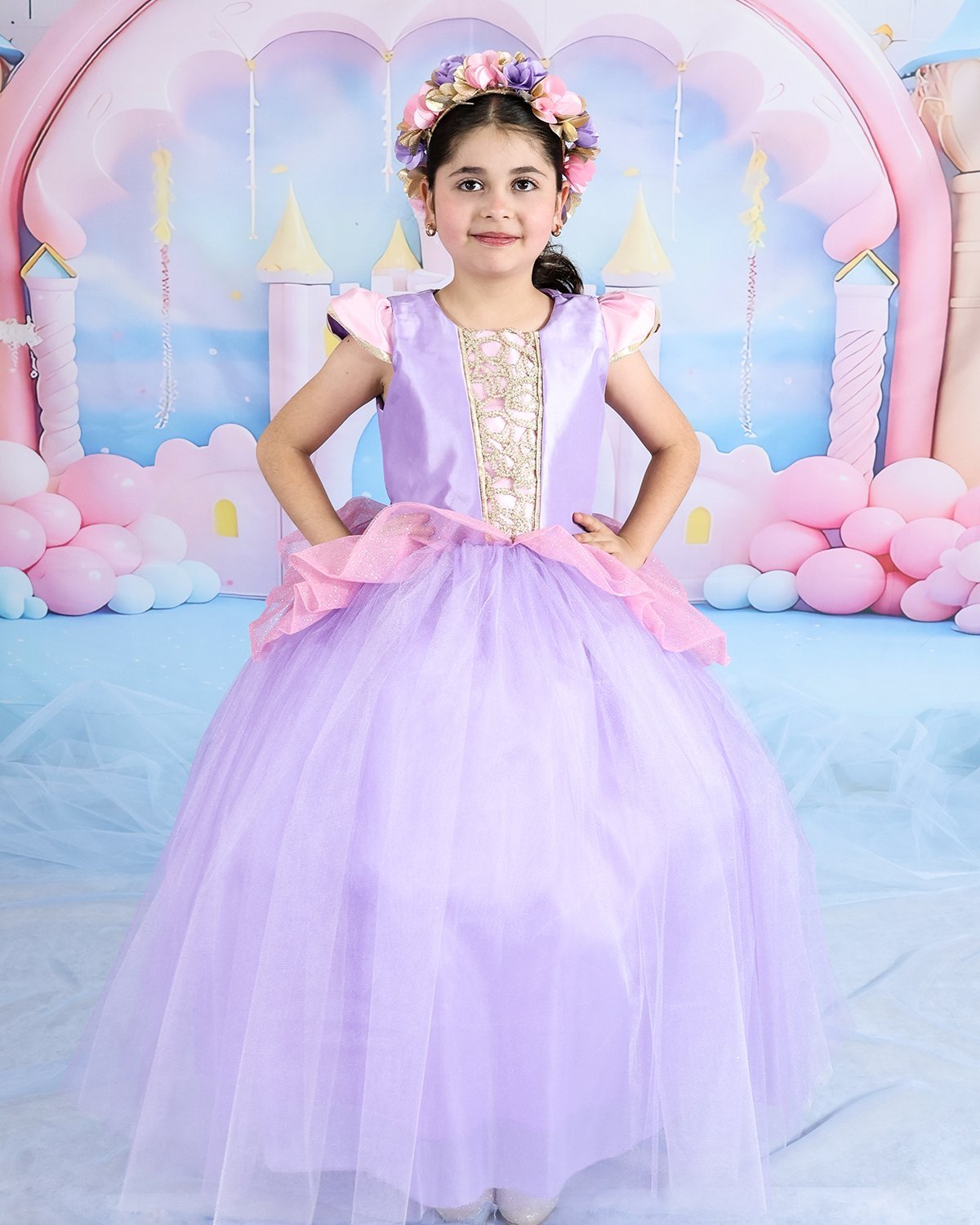 Let your daughter feel like Princess Rapunzel in this stunning Maylin costume! Crafted from a high-quality combination of lining, veil and taffeta, this costume features gold-colored appliqués and a beautiful flower crown included. This costume is perfect for any princess-themed event or fancy dress party.