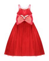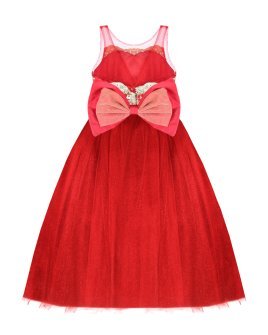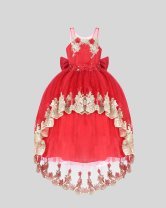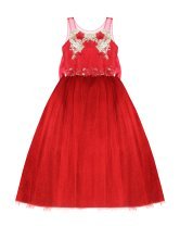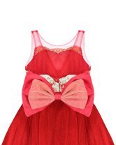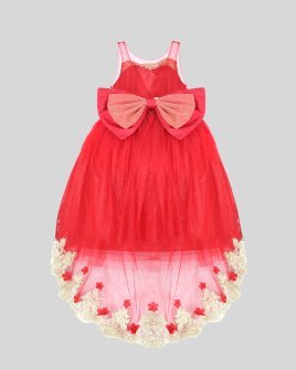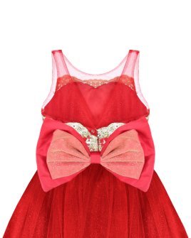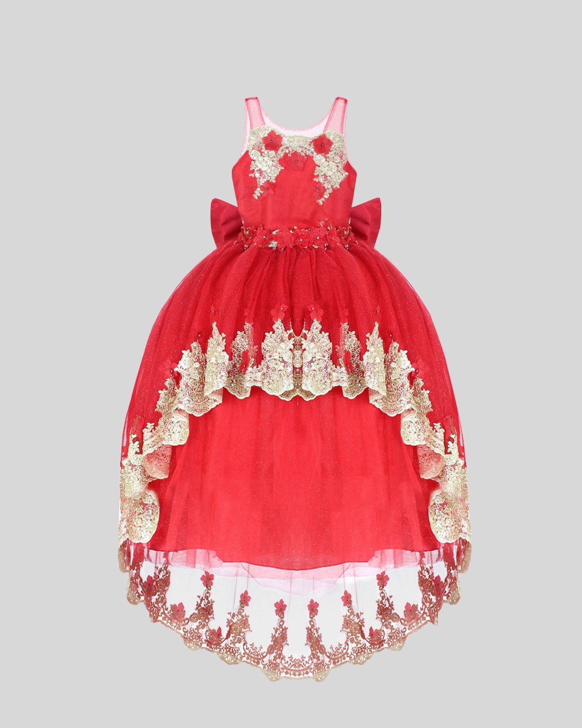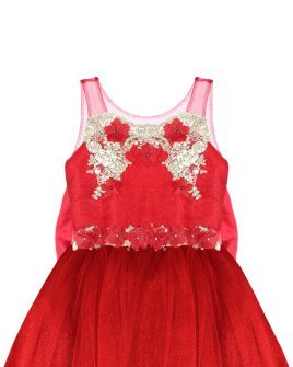 Elegant girl's dress with sequin embroidery, 3D flower details with crystal beading, detachable Glittel skirt and Glittel tulle skirt with double bow decoration at the waist.