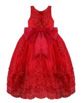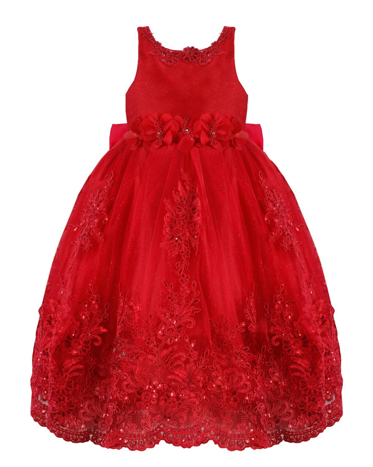 Romina princess dress with taffeta bodice, embroidery, handmade flowers, and glitter tulle skirt with embroidered medallions.